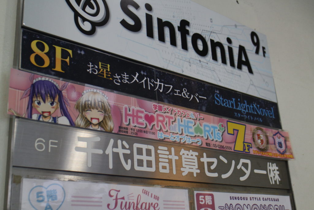 エントランスにコンカフェ各店の看板が出ているので確認ができるかと思います。