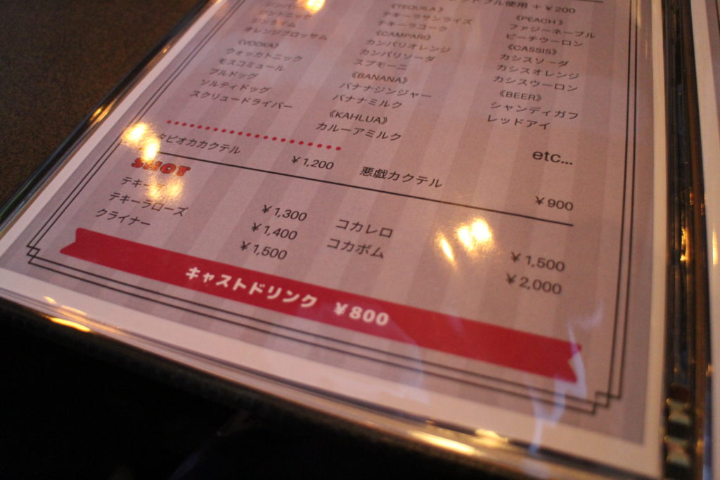ドリンクはソフトドリンクもアルコールも800円からと明朗な設定となっており、ショットバーらしくカクテルは記載されたメニュー以外でも対応できるようです。