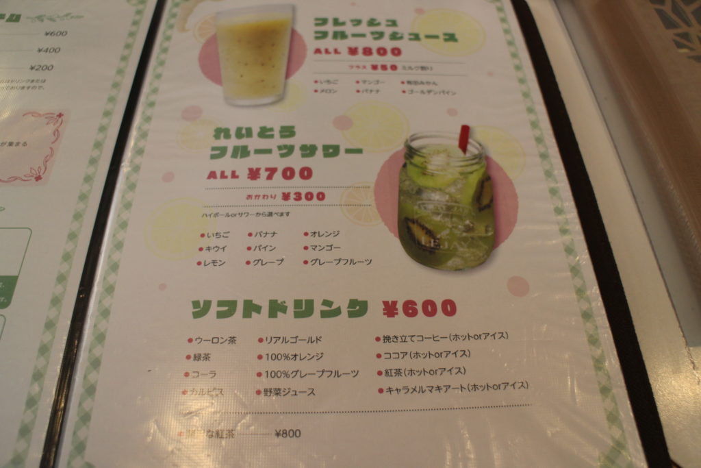 店舗一押し「フレッシュジュース」が800円で6種から選べるようになっています。