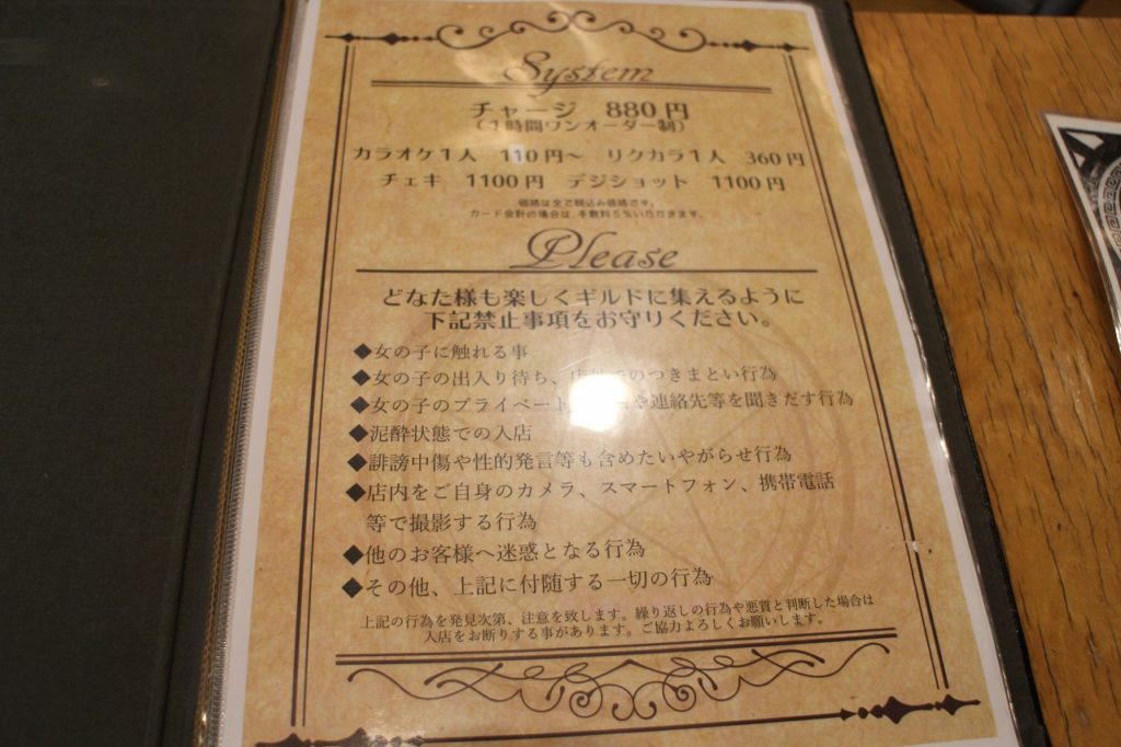 当店の制服はギルド専用服があるようで、アニソンバーなだけありコスプレをされる方も多数いらっしゃるようです。