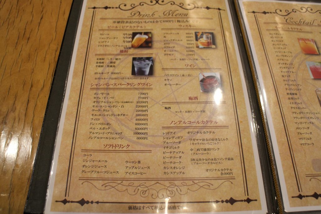 ドリンクは基本880円となっており、それ以上の料金の場合のみメニュー表に金額が明記されるようになっています。
