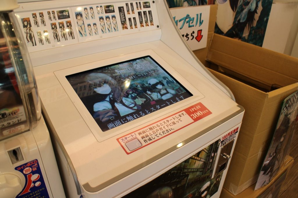 カウンターの横にはシュタゲのシール作成機やガチャなども置かれ、聖地巡礼としても利用できるのが嬉しいですね。