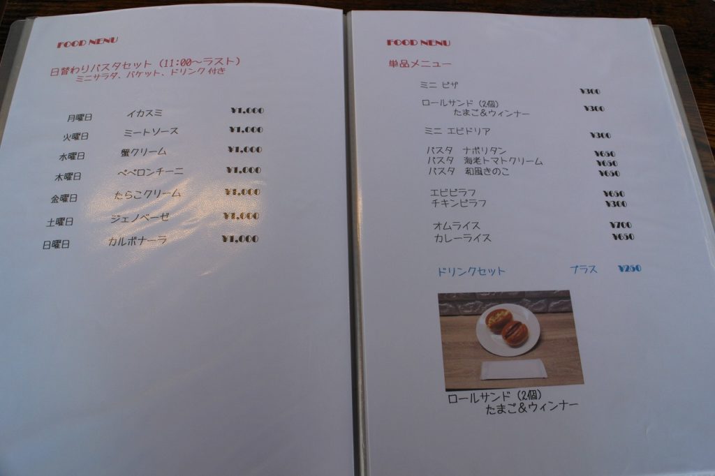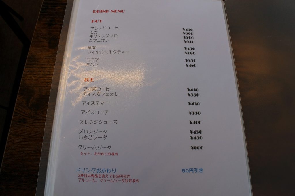 また喫茶店を根幹とした営業ですので時間帯のサービスが多くあり、開店時の「モーニング」では500円からドリンクミニサラダ付きのトーストセット、「ランチセット」では600円からミニサラダドリンクがついてきます。