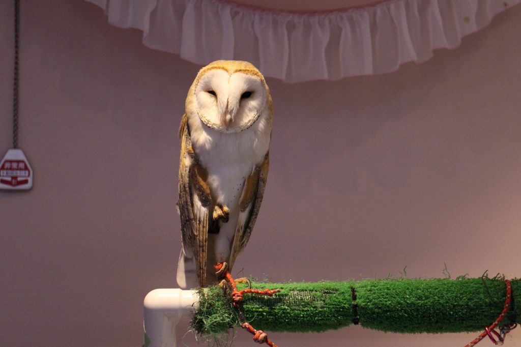 奥には猛禽類が三羽ステージを飾るように鎮座しています。