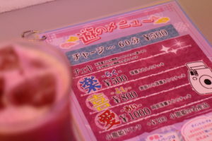 エンタメメニューにはチェキ撮影があり、落書きのボリュームで金額が変ります。
