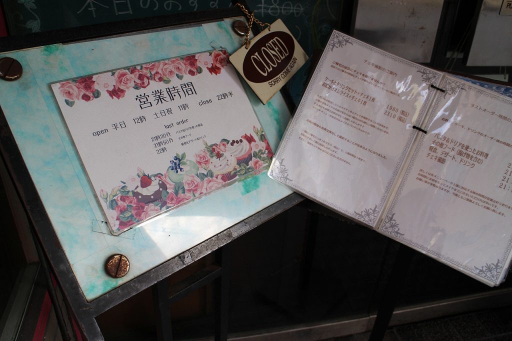 開店時看板と共に道路に料理のサンプルが並べられるのでわかりやすいです。