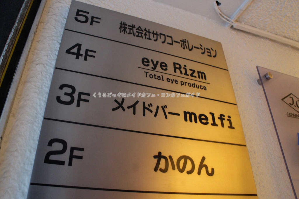 ビル入り口入居テナント一覧から確認ができ、店先には常時店名を記したプレートが置かれているので確認ができます。