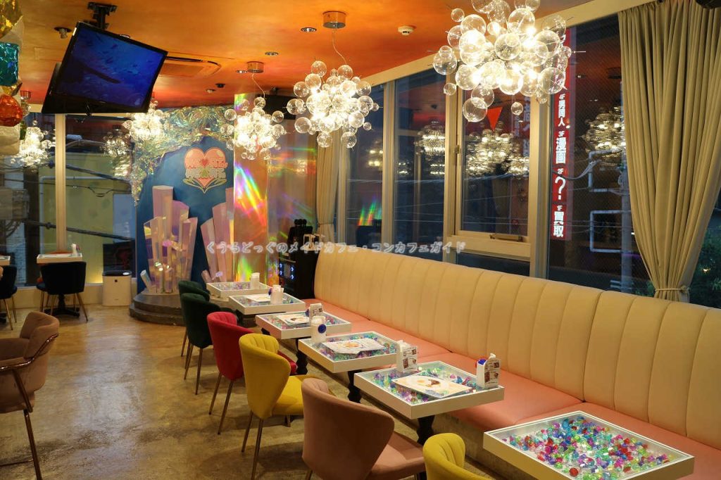 ファンシーな配色でかわいさ満点な店内には全席ソファ席が用意されまったりと過ごせる空間で営業しています。