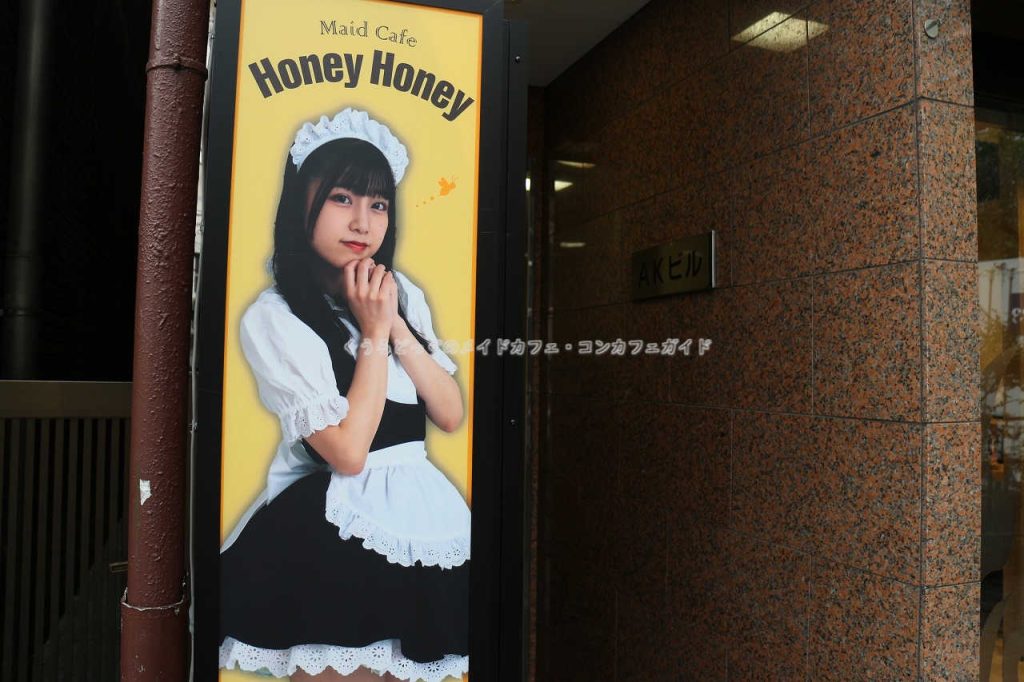 ビル入口にメイドさんの写る看板が常設されているので確認ができます。