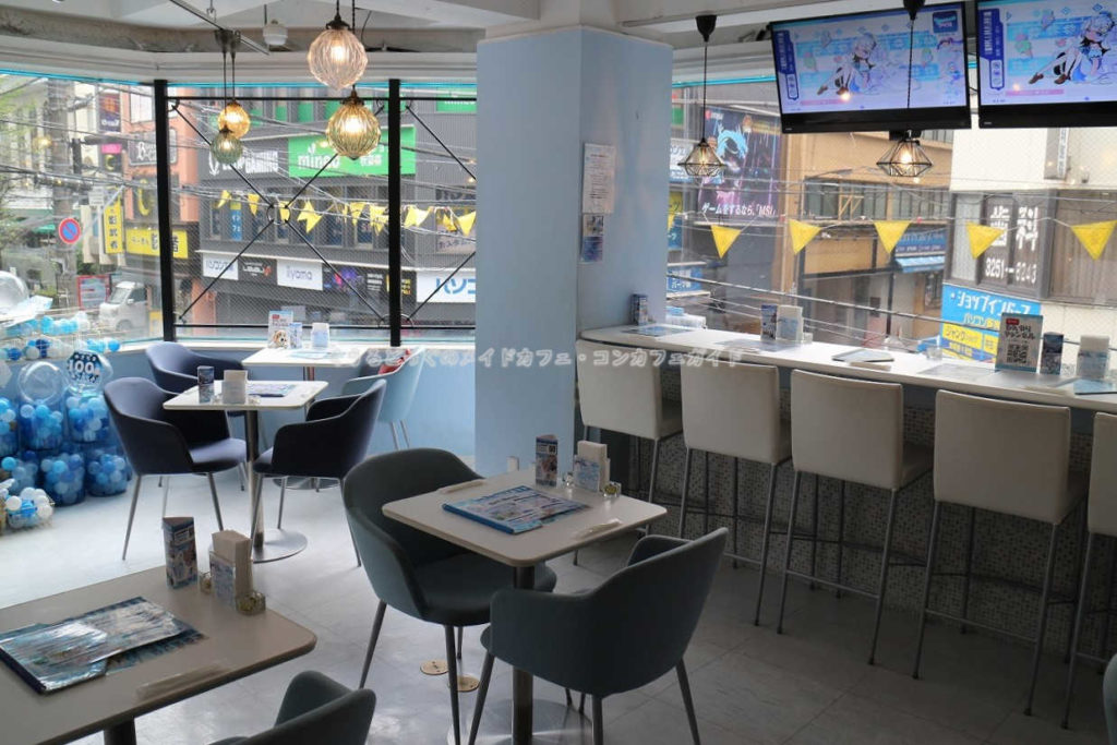2階エンタメフロアは3年半ぶりの来店でしたがカーテンを掛けない全面窓の開放感溢れる店内模様はほぼ変わらず、テーブル席は9卓2人掛け、カウンターは5席でレイアウトも変更なし。