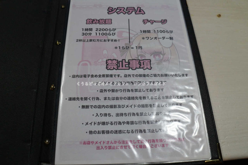 ワンドリンクオーダー時はチャージ料金は60分1100円です。