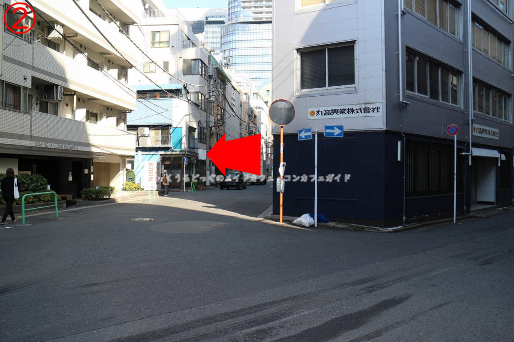 ②次の交差点を右斜め前に進み次の交差点を左折します。