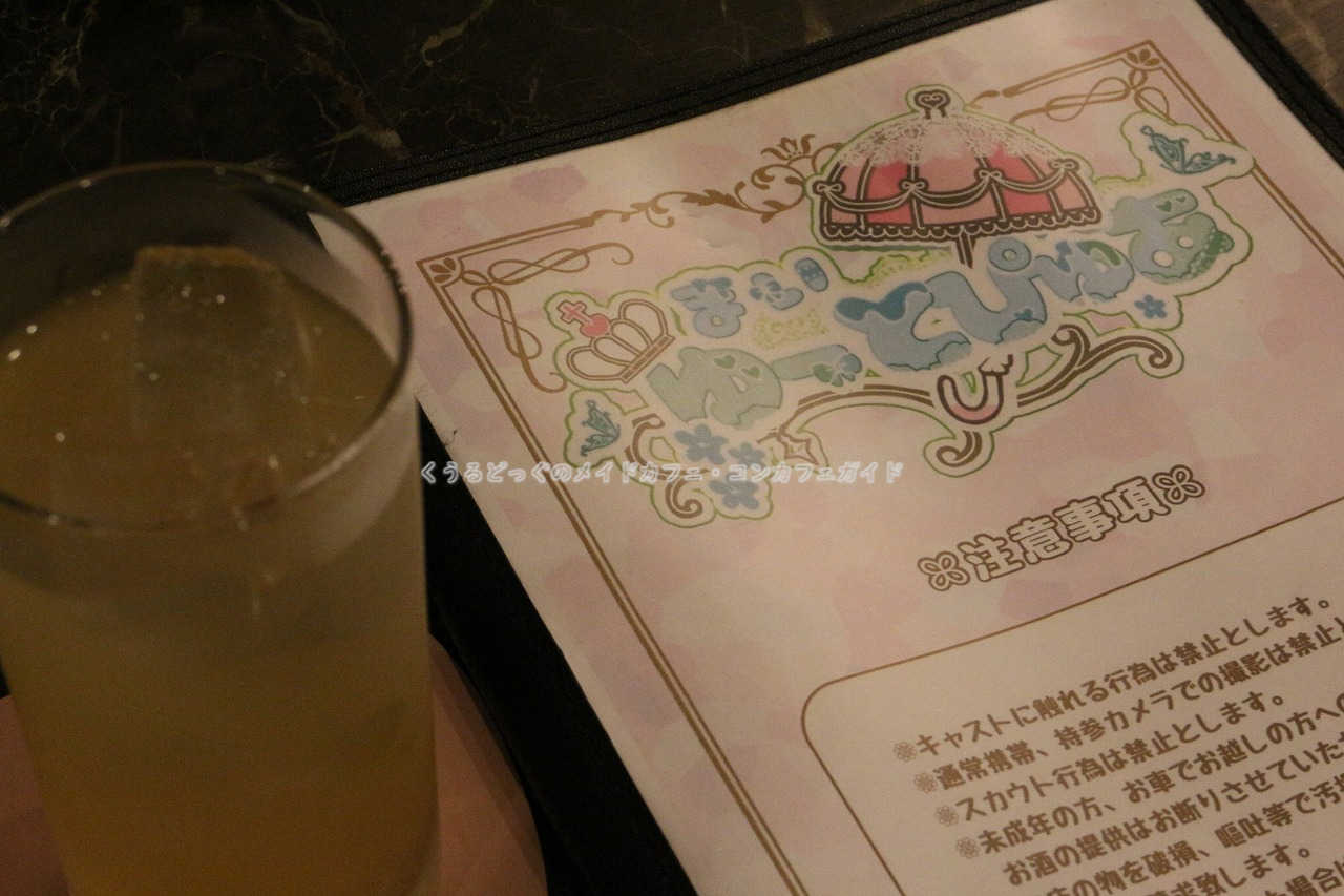 メニュー表からもわかる通りメイドさんと盛り上がるメニューが優先的に表記されているので、自分の飲む分を先に注文するよりもメイドさんに先ずは駆け付け一杯のようにふるまうとより楽しめるかと思います。