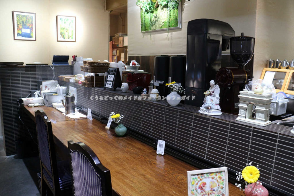 カウンターの上には西洋の陶器製の置物が鎮座しアキバカルチャーに因んだフィギュア類やポスターを置かないことで営業する上での店舗属性を表していますね。