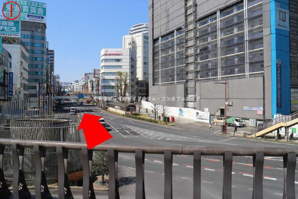 ①北口から出て目の前を通る国道50号を西に直進します。