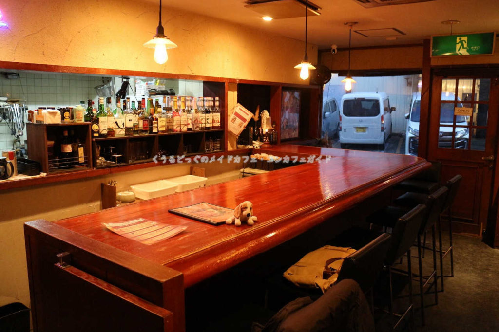対して奥側のカウンターではキッチンの入口にあたりメイドさんの歓談する風景だけでなく調理をしている様子も楽しむことができます。